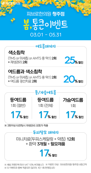 치료받으시는 모든 분들의 소원대로 피부와 탈모, 비만과 그 밖의 건강문제로 평생 마음 쓸 일 없이 일상생활에서 자신의 일에 최선을 다하며 즐겁고 열심히 지내실 수 있도록 지치고 아픈 몸과 마음을 돌보고 치료하겠습니다.